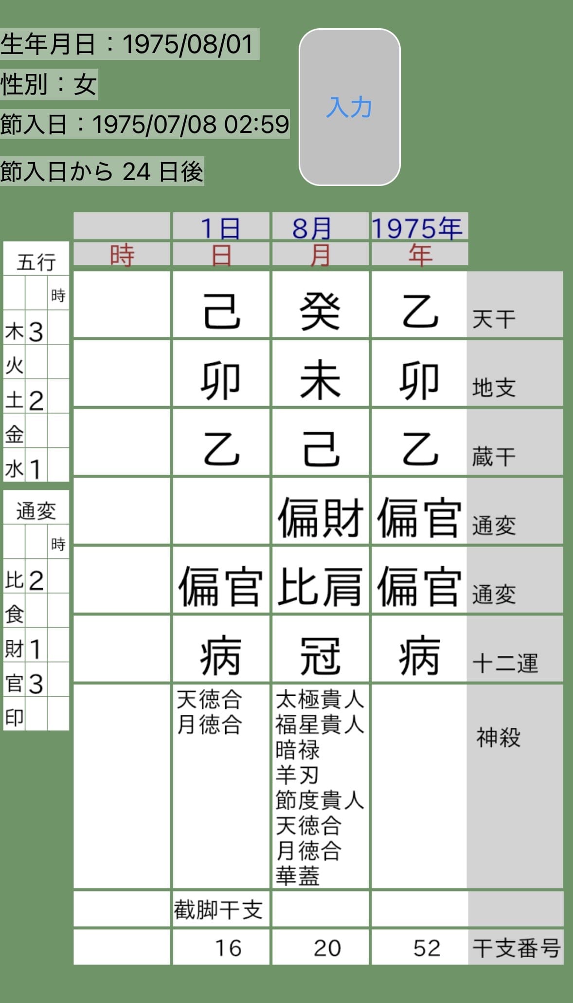 まずは、カズレーザーさんの生年月日(1984年7月4日)から、四柱推命の命式を見ていきます。
