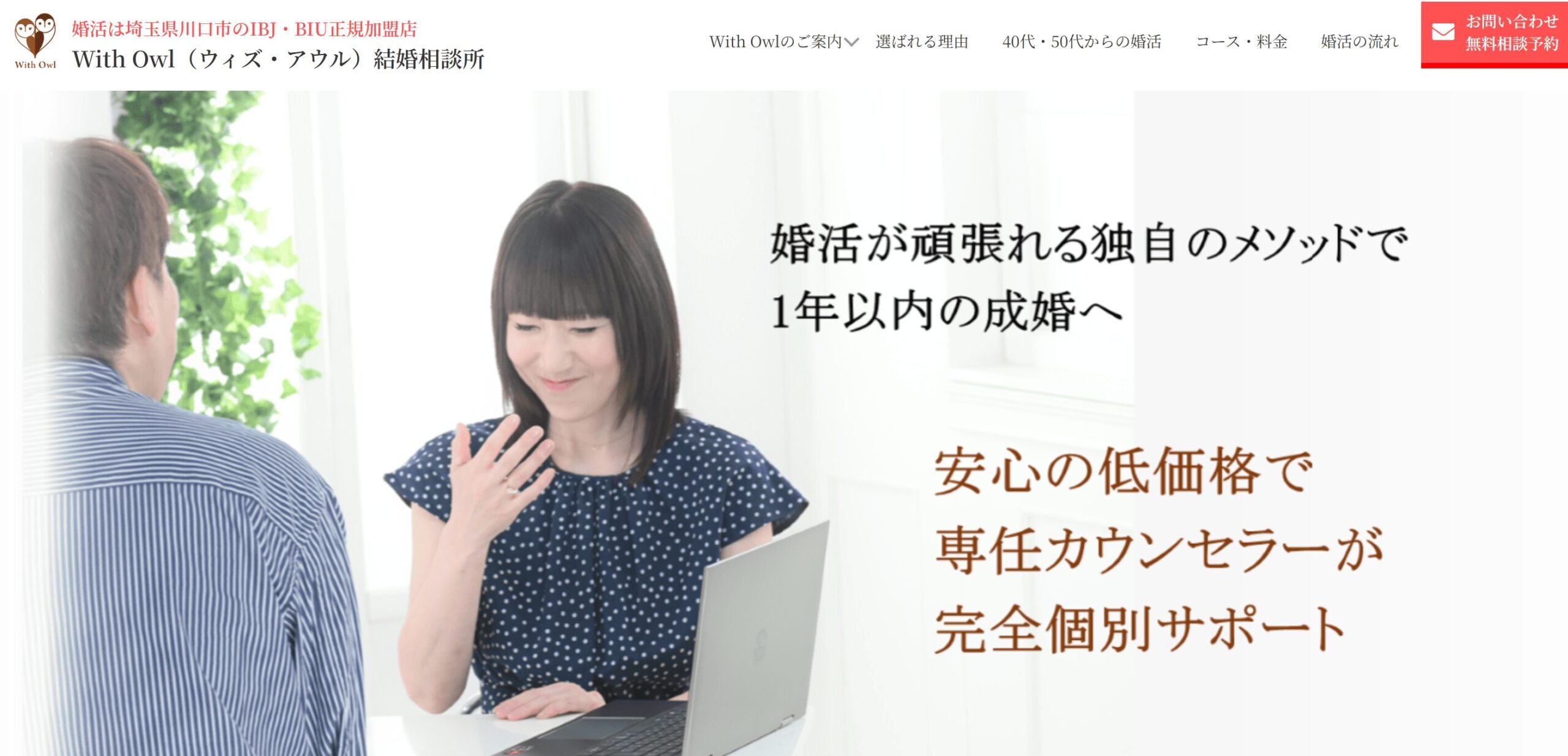 | With Owl | 仲人型 | 5.5万〜 | 1.1万〜 | 22万 | 40・50代/相性学で選びたい方 |