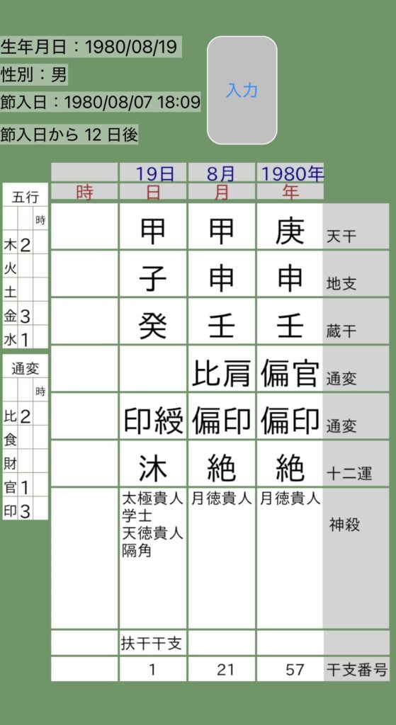 ディーン・フジオカさん(1980年8月19日生まれ)の命式には、彼の持つ独特の感性、そして常識にとらわれない行動力が色濃く表れています。