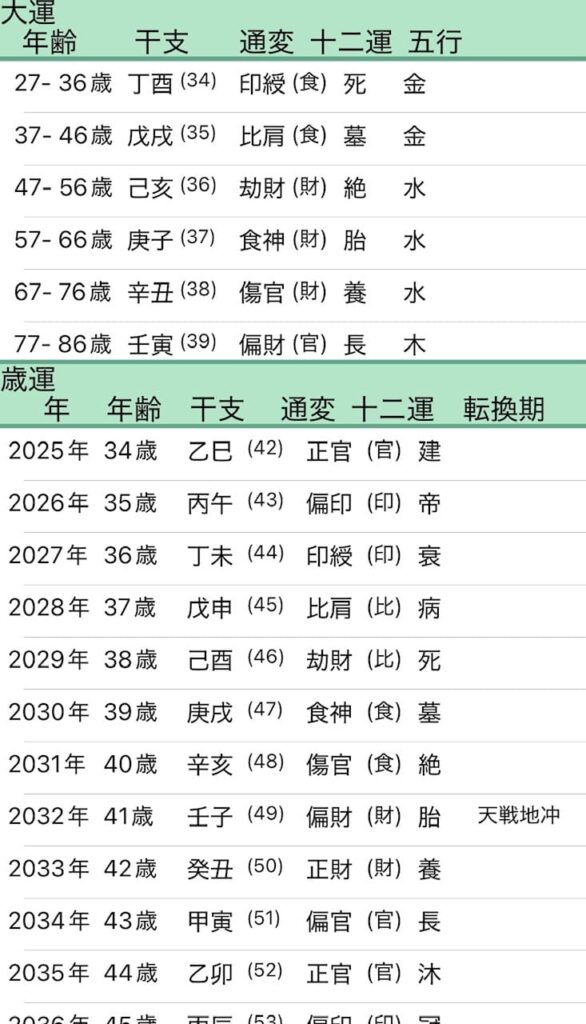 - 2025年の運勢:強力なエネルギーが巡る「決断」の年 今年は年運の「巳」と命式の「午・未」が組み合わさる(方合会局)ことで、運勢の勢いが非常に強い一年です。 「終わり良ければ総て良し」という整理の運気と、「新しいことを始めたい」という決断の運気が同時に巡っています。結婚という大きな節目を迎えたのは、まさに「これまでの独身生活に区切りをつけ、新生活をスタートさせる」という運勢通りのタイミングと言えるでしょう。